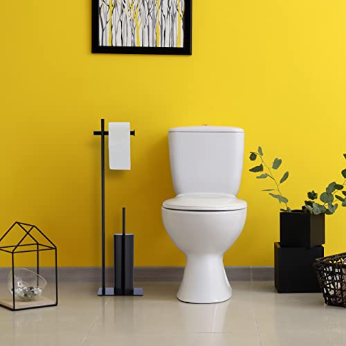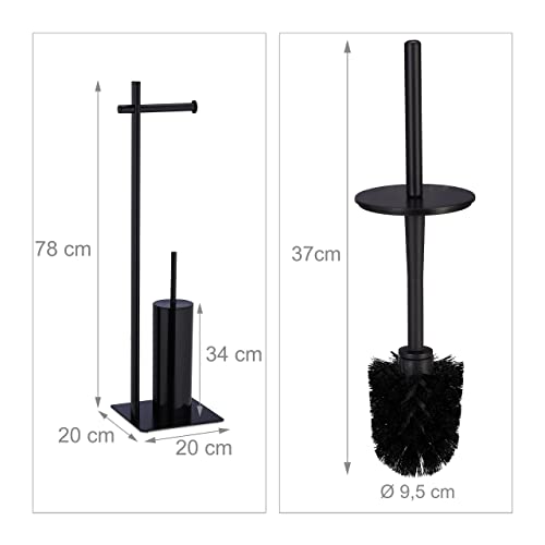 Relaxdays WC Piantana Portarotolo e Scovolino, Carta Igienica, Portascopino, in Acciaio, HxLxP: 78 x 20 x 20 cm, Nero, 100%