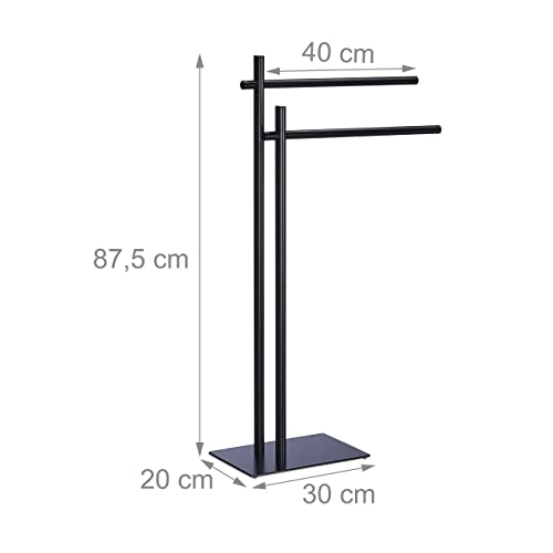 Relaxdays Piantana Portasciugamani da Terra, 2 Bracci, HLP: 87,5 x 51 x 20 cm, Portasalviette Bagno, in Acciaio, Nero, Lega