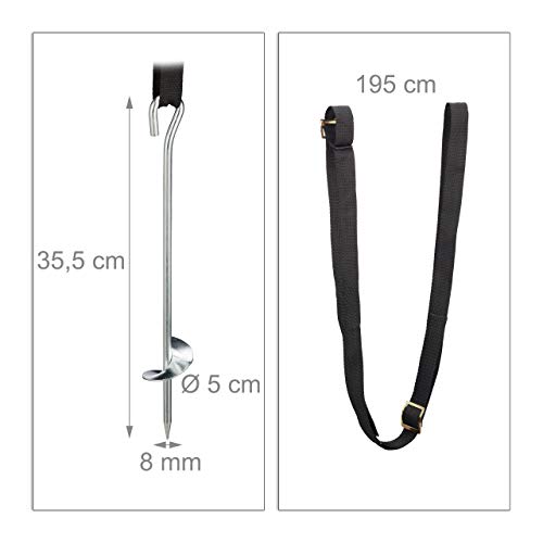 Relaxdays Set di Picchetti da Trampolino, 8 Pezzi, con Cinghia, Resistente a Intemperie, Acciaio Zincato, Nero/Argento