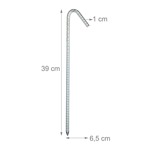 Relaxdays Picchetto XL per Tende, Set da 10, Ancoraggio Stabile, da Campeggio, L: 39cm, Acciaio Zincato, Argento