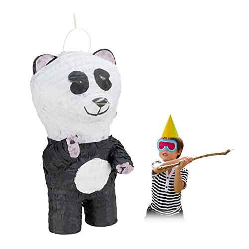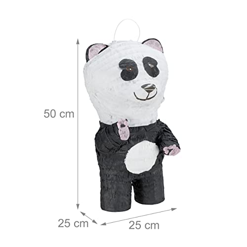Relaxdays Pignatta a Forma di Panda, da Appendere, Bambini & Adulti, da Riempire, Feste & Party, 50x25x25 cm,nera/bianca, Colore bianco-nero, 10031486