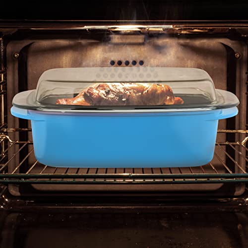 Relaxdays Pirofila da Forno, Coperchio in Vetro, Casseruola, per Lavastoviglie, Rostiera, Teglia in Alluminio, Azzurro