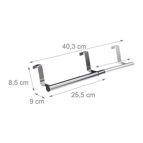 Relaxdays Porta Asciugamani Allungabile, 1 Asta, da Appendere, Porte & Mobili, L: max. 40 cm, Acciaio Inox, Argento