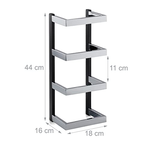 Relaxdays Porta Asciugamani, Mensole, Ripiani Porta Salviette, Cromo, HLP 44x18x16 cm, Argento/Nero