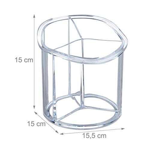 Relaxdays Porta Pennelli in Acrilico con 3 Scomparti, Trasparente, 15,00 X 15,00 X 15,50Cm