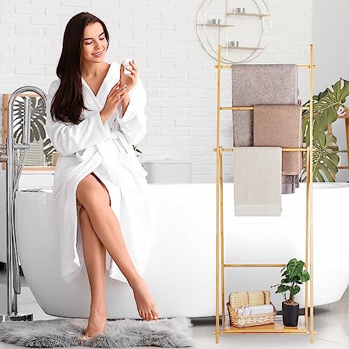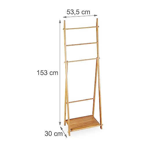 Relaxdays Portasciugamani Bagno da Terra, Piantana Porta Accappatoio con Ripiano Bambù, HLP: 153 x 53,5 x 30 cm Marrone