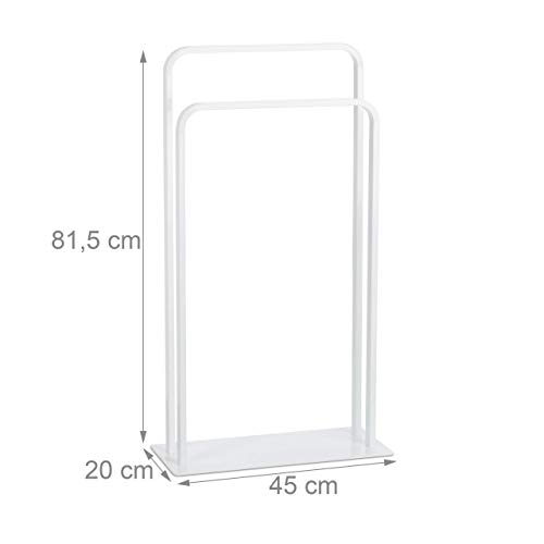 Relaxdays Portasciugamani da Terra, a Forma di U, 2 Aste, Portasalviette, Base Rettangolare, HxLxP: 81x45x20 cm, Bianco