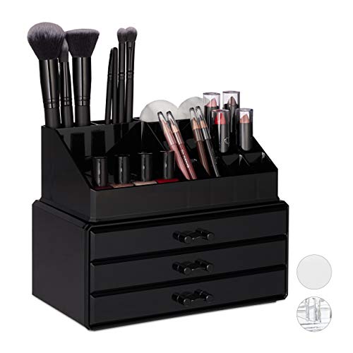 Relaxdays Portatrucchi, H x B x T: ca. 19 x 23,5 x 14 cm, 2 Organizer Combinabili, Portaoggetti per Cosmetici con Cassetti, Multiuso, Versatile, Nero