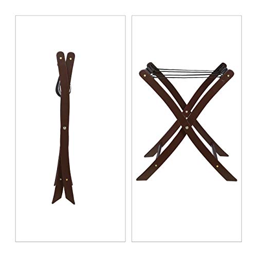 Relaxdays Portavaligie Pieghevole, Scaffale in Legno, Cavalletto Reggivaligie, HxLxP: 52,5 x 66,5 x 48 cm, Marrone, 1 unità
