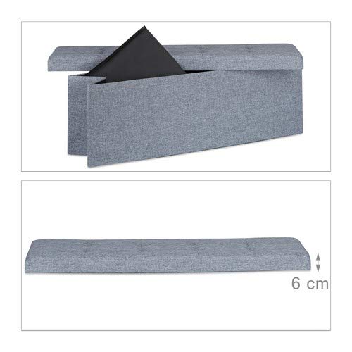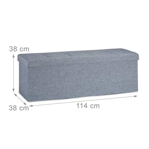 Relaxdays Pouf Pieghevole con Contenitore XXL, Panca Divanetto Portaoggetti, Lino, HxLxP 38 x 114 x 38 cm, Grigio Scuro, 114 x 38 x 38 cm