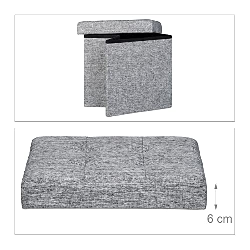 Relaxdays Pouf Pieghevole Con Contenitore, Sgabello a Forma di Cubo, Lino, Coperchio Rimovibile, 38x38x38 cm;