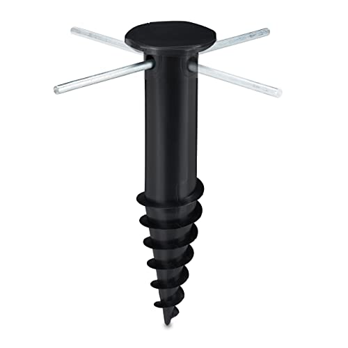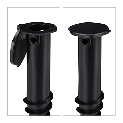 Relaxdays Punta per Ombrellone Spiaggia, Picchetto 32-50mm da Piantare nel Terreno, Plastica, Portaombrellone Mare, Nero