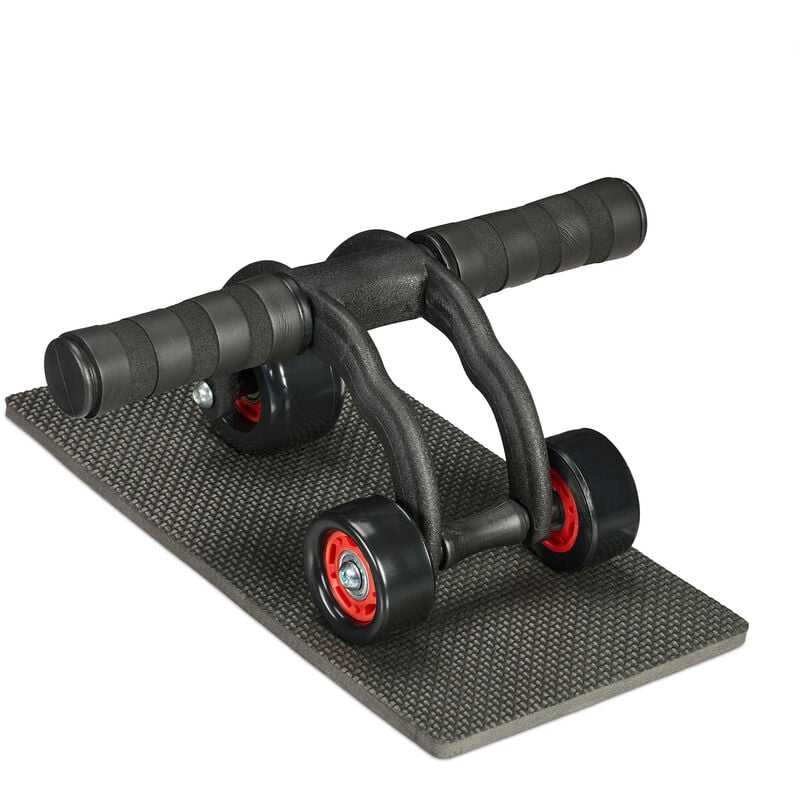 Con questo rullo per addominali non avrai solo un nuovo attrezzo sportivo, ma avrai anche in un corpo sano e forte. Il fitness roller fa lavorare i muscoli del corpo e delle braccia mentre si rotola lentamente in avanti e all'indietro con uno sforzo concentrato. Goditi l'allenamento efficace con la ruota per addominali grazie all'elevata capacità di carico, alle maniglie imbottite e al tappetino per le ginocchia che favorisce le articolazioni. Le 3 ruote dell'addominal trainer garantiscono una maggiore stabilità durante l'allenamento. Rullo per addominali in dettaglio - Dimensioni complessive H x L x P: ca. 12 x 29,5 x 22 cm - Dimensioni del tappetino per le ginocchia L x P: ca. 33 x 16,5 cm - Dimensioni delle maniglie L x P: ca. 11 x 3,5 cm ciascuna - Capacità di carico: ca. 150 kg - Peso: ca. 0,7 kg - Materiale: acciaio, PP, EVA - Colore: nero, rosso Ab trainer con 3 ruote per un maggiore equilibrio - Allenamento efficace tra le proprie 4 mura - L'addominale fa lavorare i muscoli