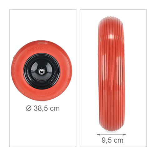 Relaxdays Ruote Carriola in PU 4.80 4.00-8, Gomma Piena con Cerchione in Acciaio, Antiforatura, da Carrello, Nero