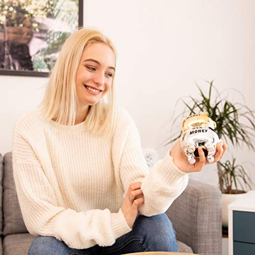 Relaxdays Salvadanaio di Coppia His&Her Money, 2 Maialini, Ceramica, Idea Regalo Divertente per Matrimoni, Oro/argento