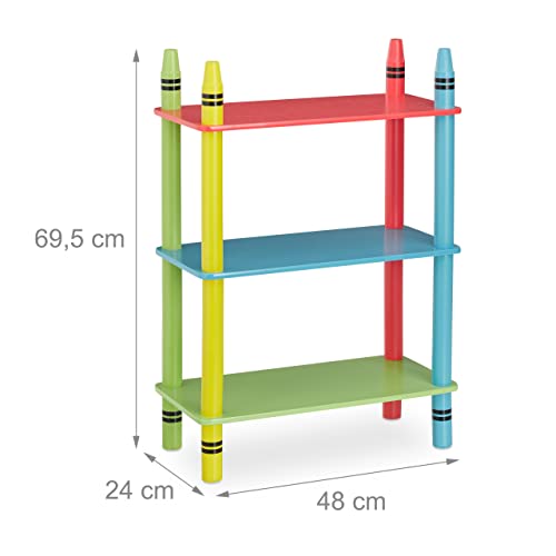 Relaxdays Scaffale per la Cameretta dei Bambini, Libreria, 3 Scomparti, MDF e Legno, HLP 69,5x48x24 cm, Colori Vivaci, ingegnerizzato, 1 pz