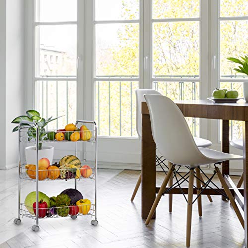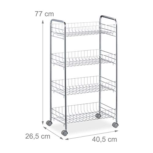 Relaxdays Scaffale in Metallo Carrello da Cucina, Ripiani, Portavivande, 4 Ruote, Multiuso, Bagno & Ufficio,Salvaspazio,77x40,5x26,5, Acciaio, plastica, Argento/Grigio