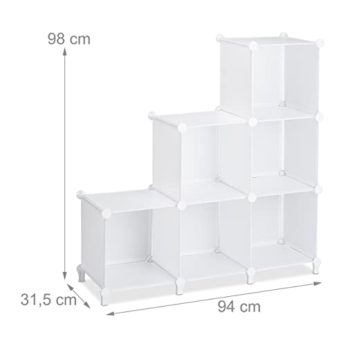 Relaxdays Scaffale Modulare con 6 Scomparti, Cubi Componibili 30x30x30, HLP: 98x94x31,5 cm, Plastica e Metallo, Bianco, 1 pz