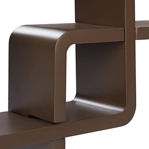Relaxdays Scaffale da Parete con 4 Scomparti, Mensole Sfalsate, 42 x 104 x 10cm, Libreria Salvaspazio Cubo, Marrone