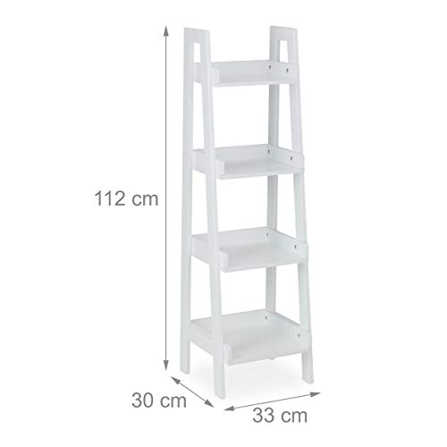 Relaxdays Scaffale a Scala, 4 Mensole, Mobile da Bagno, Cucina, Libreria Bassa, per Piante, HLP: 112x33x30 cm, Bianco, 1 pz