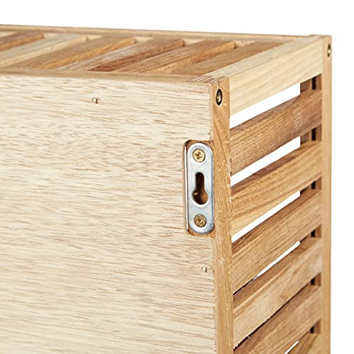 Relaxdays 2 Scaffali da Bagno, Mobile con Specchio Scorrevole, Mensola a Muro con 5 Ripiani, da Parete, Legno di Noce, Naturale