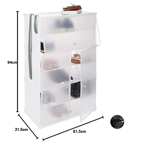 Relaxdays Scarpiera in Plastica, 6 Scomparti Chiusi, 94x61,5x31,5 cm, Scaffale 24 Paia di Scarpe, Componibile, Bianco