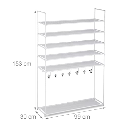 Relaxdays Scarpiera con Porta Stivali, 6 Ripiani, Scaffale Portascarpe per 20 Paia, 7 Ganci, in Metallo e Stoffa, Bianco
