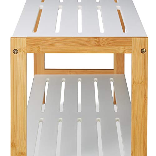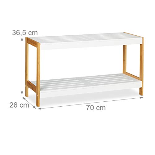 Relaxdays Scarpiera con 2 Ripiani, Robusto Portascarpe, Scaffale per Scarpe, Legno MDF, Bianco/Marrone, 36,5 x 70 x 26 cm