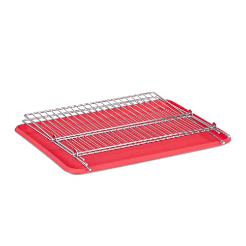 Relaxdays Scolapiatti da Appoggio Lavello, Scola Piatti, Tazze, Vaschetta Raccogli Acqua, Gocciolatoio per Cucina, Rosso, 1 pz