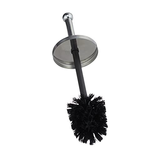 Relaxdays 10x Set di Scopino e Portascopino Rotondo, per Bagno e WC, Testa Scopino Sostituibile, Acciaio Inox, Argento/Nero