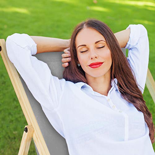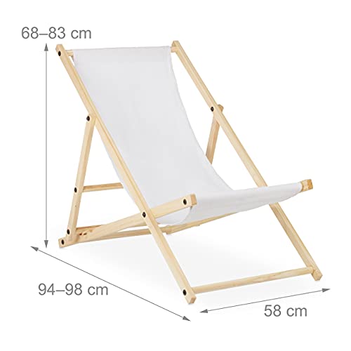 Relaxdays Sdraio Pieghevole, in Legno e Stoffa, Sedia per Il Balcone, Il Giardino, la Spiaggia, 3 Posizioni, Bianco