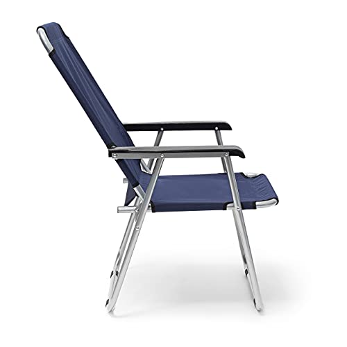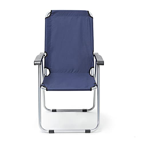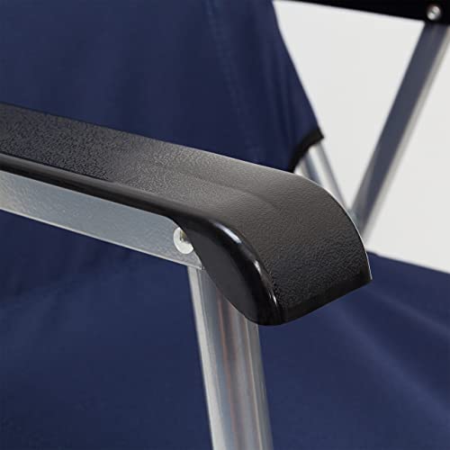 Confortevole: sedia da campeggio con rivestimento in blu scuro e braccioli in materiale sintetico