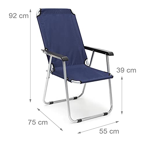 Relaxdays Sedia da Campeggio Pieghevole, HLP: 92 x 55 x 75 cm, da Pesca, Viaggio, da Giardino e Balcone, Blu Scuro, Acciaio, 1 pz