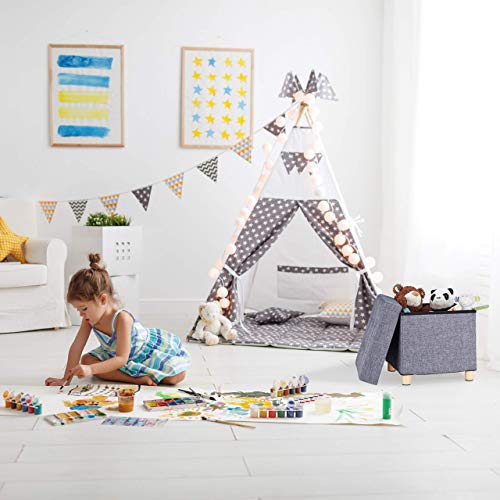 Relaxdays Sgabello con Contenitore, Imbottitura Morbida, Trapuntata, con Fodera di Stoffa HLP: 39 x 38 x 38 cm, Pannelli MDF, Tessuto, Legno, Grigio Scuro, 1 Pz