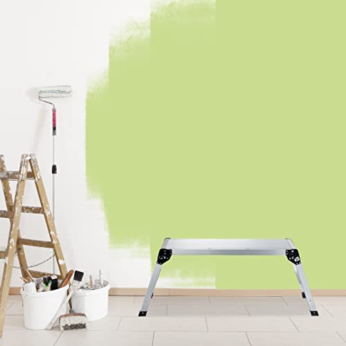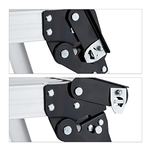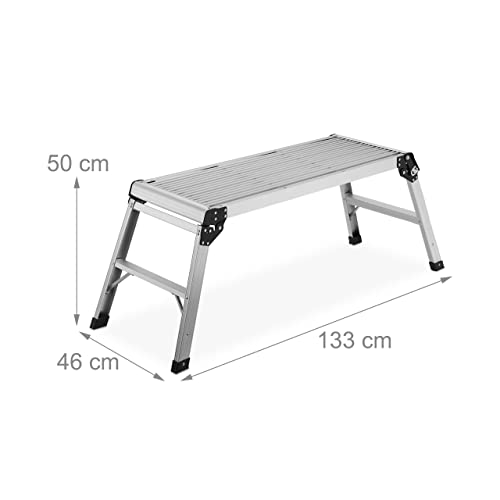 Relaxdays Sgabello Pieghevole da Lavoro in Alluminio, Scalino Rialzo, Max. 150 kg, HLP: 50x133x46 cm, Pedana, Argentato, 80% 20% plastica, 1 pz
