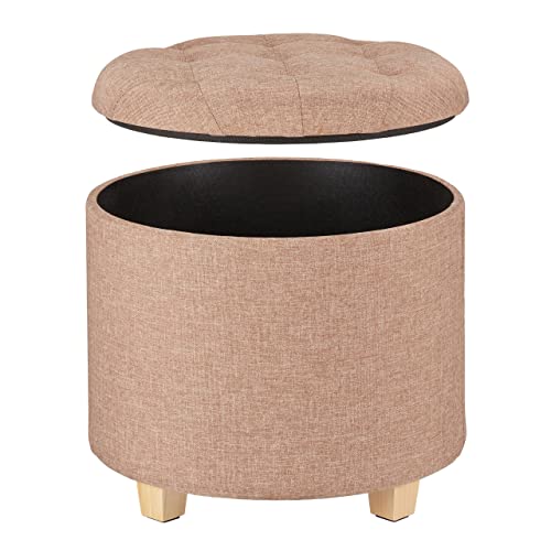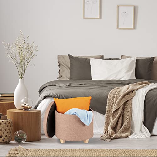 Relaxdays Sgabello Pouf Contenitore Rotondo, in Tessuto Imbottito, Gambe in Legno, con Scomparto, HxD: 41x45 cm, Marrone