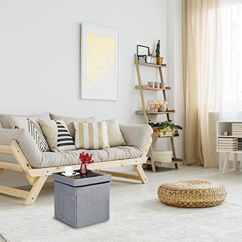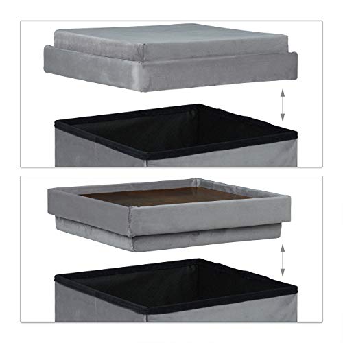 Relaxdays Sgabello in Velluto, Pouf Contenitore, Vassoio nel Coperto, Poggiapiedi Pieghevole, HLP 42 x 38 x 38 cm,grigio