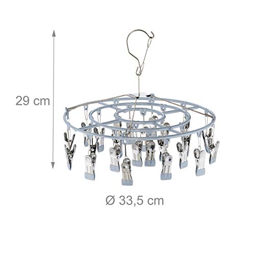 Relaxdays Stendino per Calzini & Biancheria, 24 Ganci Appendicalze, Stendibiancheria Girevole Salvaspazio, Color Grigio