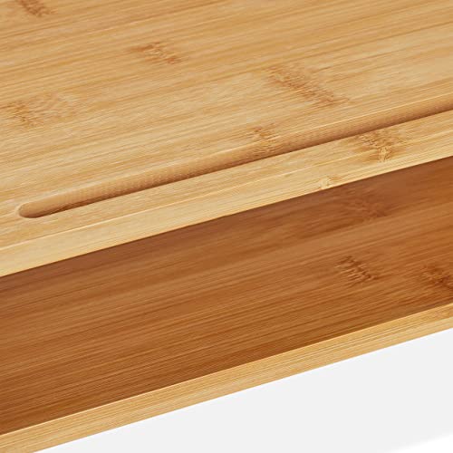 Relaxdays Supporto per Monitor, Rialzo per Schermo con Scomparti, Stand Computer Portatile 16 x 57,5 x 25 cm, Naturale, bambù