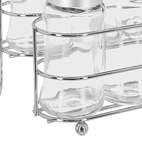 Relaxdays Supporto Portaspezie con 8 Barattolini in Vetro, con Tappo Spargi Spezie Porta Vasetti in Metallo, Trasparente