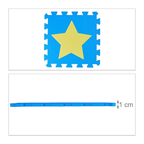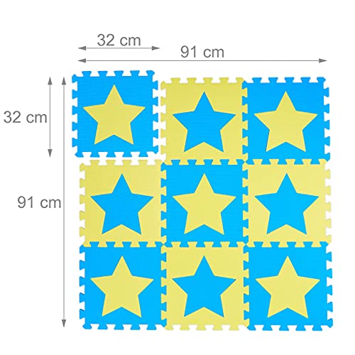 Relaxdays Tappeto Puzzle con Stelle, 9 Tasselli, 18 Parti, Gommapiuma EVA Atossico Area da Gioco 91 x 91 cm, Blu-Giallo, Colore, Set da 9x, 10031428_1260