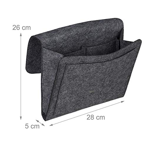Relaxdays Tasca Portaoggetti da Letto, 5 Scomparti da Appendere, Portatelecomandi Divano, Organizer Feltro, Grigio Scuro, 100%, 1 pz