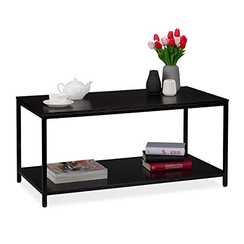 Relaxdays Tavolino da Divano con Ripiani, Rettangolare, per Salotto, Struttura in Metallo, HLP 42x100x50 cm, Nero, Legno MDF