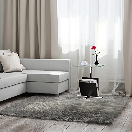 Relaxdays Tavolino con Portariviste, Metallo & Vetro, Mobile da Divano, Porta-Giornali, HxLxP: 53 x 46 x 36 cm, Nero, Acciaio, Black, Set da 1 pz
