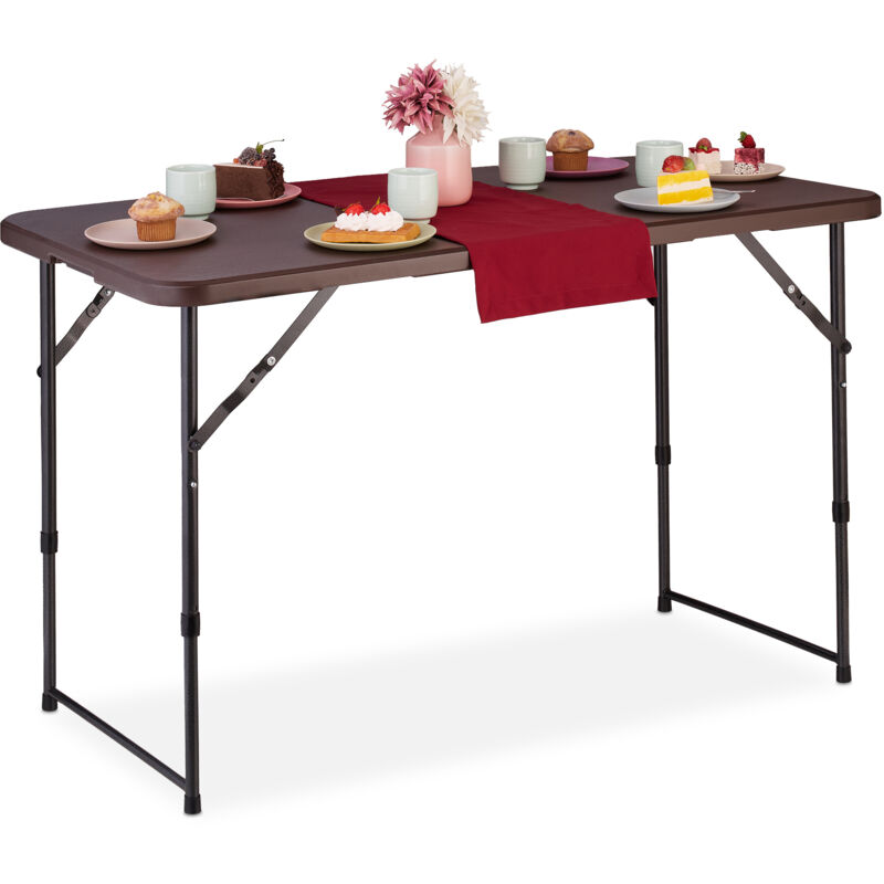 Questo tavolo da campeggio pieghevole è perfetto per tutte le tue avventure all'aria aperta. Ideale per il campeggio, le feste estive e i barbecue, può ospitare comodamente fino a 6 persone grazie al suo ampio piano in plastica. Facile da montare e riporre, il tavolo è dotato di una pratica maniglia per il trasporto, rendendolo ideale non solo per il giardino o il patio, ma anche per le tue vacanze in campeggio. La struttura in acciaio garantisce stabilità e durata, mentre il design pieghevole consente di risparmiare spazio quando non in uso. Tavolo da campeggio in dettaglio - Dimensioni aperto H x L x P: ca. 53,5 x 120 x 60 cm - Piegato H x L x P: ca. 7 x 60 x 61 cm - Capacità di carico: ca. 60 kg - Peso: ca. 7,6 kg - Materiale: plastica PE, acciaio - Colori disponibili: vari Tavolino pieghevole per esterni - Adatto per campeggio, giardino, balcone e terrazza - Spazio sufficiente per 6 persone - Ideale per birrerie all'aperto, sagre e fiere di paese - Facile da piegare e da mettere