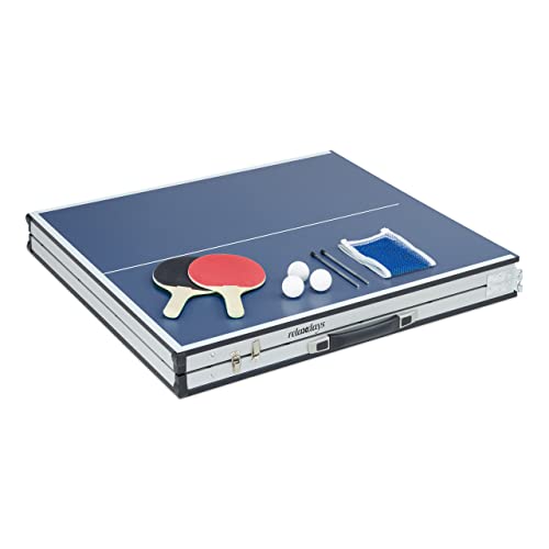 Relaxdays Tavolo da Ping Pong Pieghevole, per Interni, con Rete, 3 Palline, 2 Racchette, HLP: 70x70x150 cm, Blu/Azzurro, Legno ingegnerizzato Lega di Acciaio