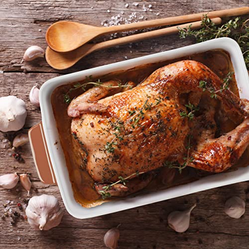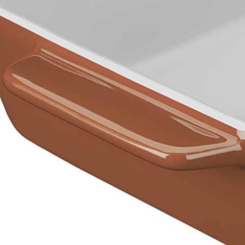 Relaxdays Set da 3 Teglie in Ceramica, Pirofile Rettangolari, per Forno, Frigo, Lavastoviglie, Manici, Marrone Bianco