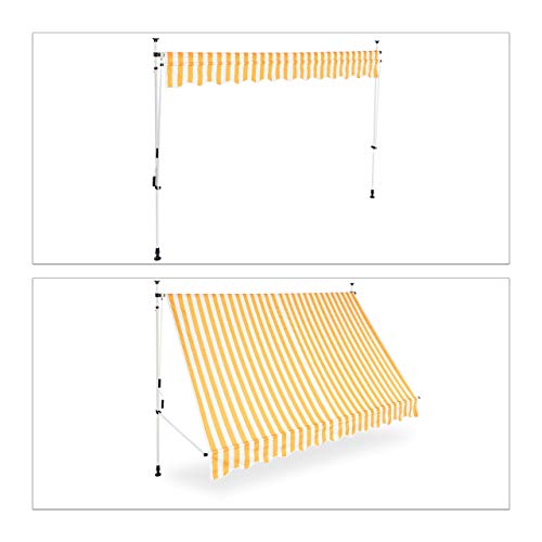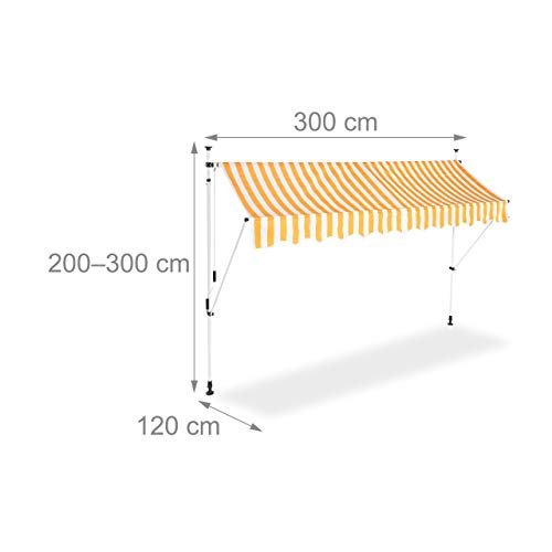Relaxdays Tenda da Sole, Protezione per Il Balcone, Regolabile, Senza Forare, a Manovella, Larga 300 cm, a Righe Gialle