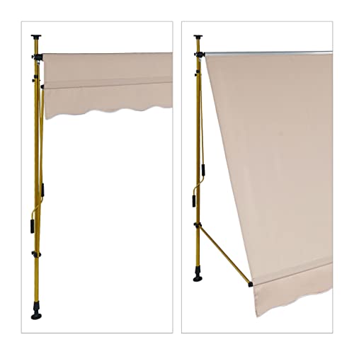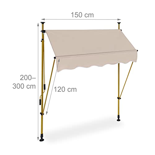 Relaxdays Tenda da Sole, Protezione per Il Balcone, Regolabile, Pensilina, Senza Fori, Manovella, 150x120 cm, Beige Oro, 50% Poliestere 40% Acciaio 10% Alluminio