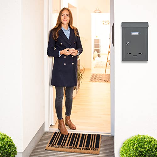 Relaxdays Zerbino, Fibra di Cocco, Scan Your Feet, Interni ed Esterni, 40x60, Codice a Barre, Antiscivolo, Naturale/Nero, 90%, 1 pz